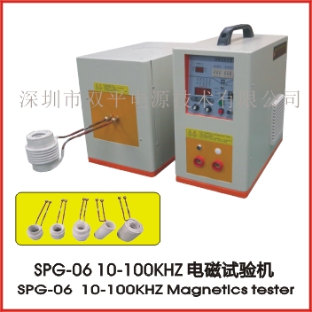 (1) SPG-06B 10-100KHZ 电磁试验机 (2) 频率范围:10-100KHZ (3) 线圈上电流:1~100A (4) 谐振电容调节档次:6档 (5) 用途:电磁场研究等