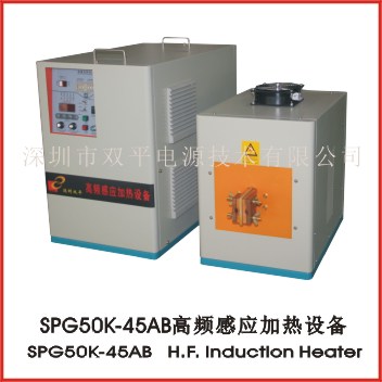 2、 感应圈上的最大电流: SPG50K系列明显大于SP系列,比如SPG50K-25B设备,感应圈上的最大电流为1350A, SP-25BD的最大电流只在900A;这个性能在感应圈匝数少和加热铜,铝等感应负载比较轻的应用时非常有利。对于加热有色金属,或者负载轻的加热用途,其性能明显优于SP系列设备。