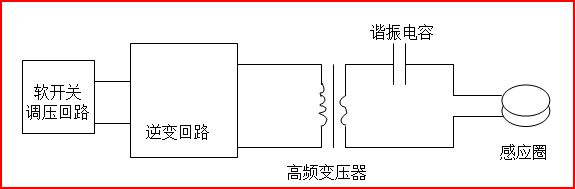 此系列设备采用串联谐振电路,谐振后通过高频变压器输出低电压、大电流的高频电源。谐振结构如图: